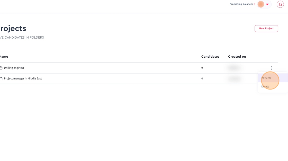5. To rename your project, click on the 3 dots on the right end and select "Rename"